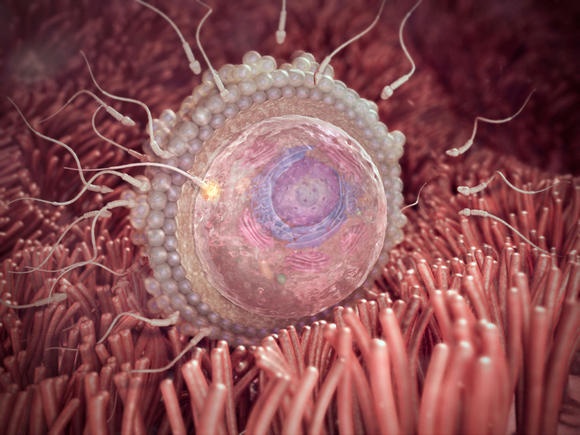 Během prvního týdne došlo k vysokému nárůstu hormonů v těle (jde o estrogen a progesteron), které pro tělo znamená signál k vytvoření nově prokrvené vrstvy tkáně v děloze, jde i o podporu oplodněného vajíčka. Vajíčka dozrávají ve vaječnících ve váčku, který se nazývá folikula. Během ovulace, která bývá kolem 14. Dne běžného 28denního cyklu, se jedno z vajíček oddělí z folikulu a putuje do vejcovodu. Během dalších 12 až 24 hodin dochází k oplodnění vajíčka jednou spermií. V průměru se jedná o jednu spermii ze zhruba 250 miliónů. Jde o průměr spermií obsažených v ejakulátu, který prochází vagínou, přes děložní hrdlo až do vaječníků, vejcovodů k vajíčku. Jen procento těchto spermií je schopno se dostat do vajíčka. Cesta k vajíčku trvá několik hodin a jen jediná spermie je schopná úspěšně prostoupit vnější membránou.