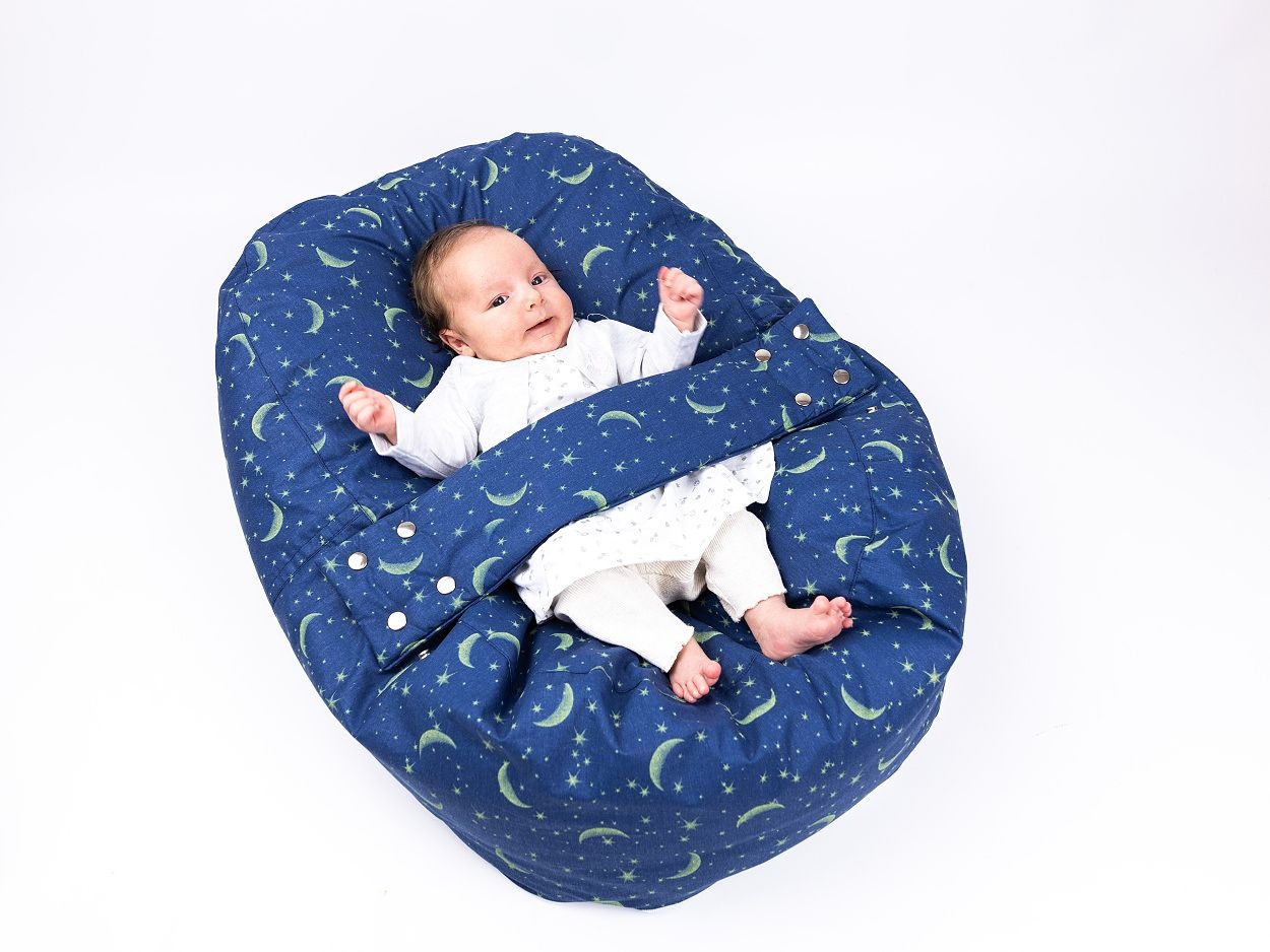 Relaxační polštář, pelíšek pro miminko, se snímatelným potahem, 100% bavlna, NOČNÍ OBLOHA