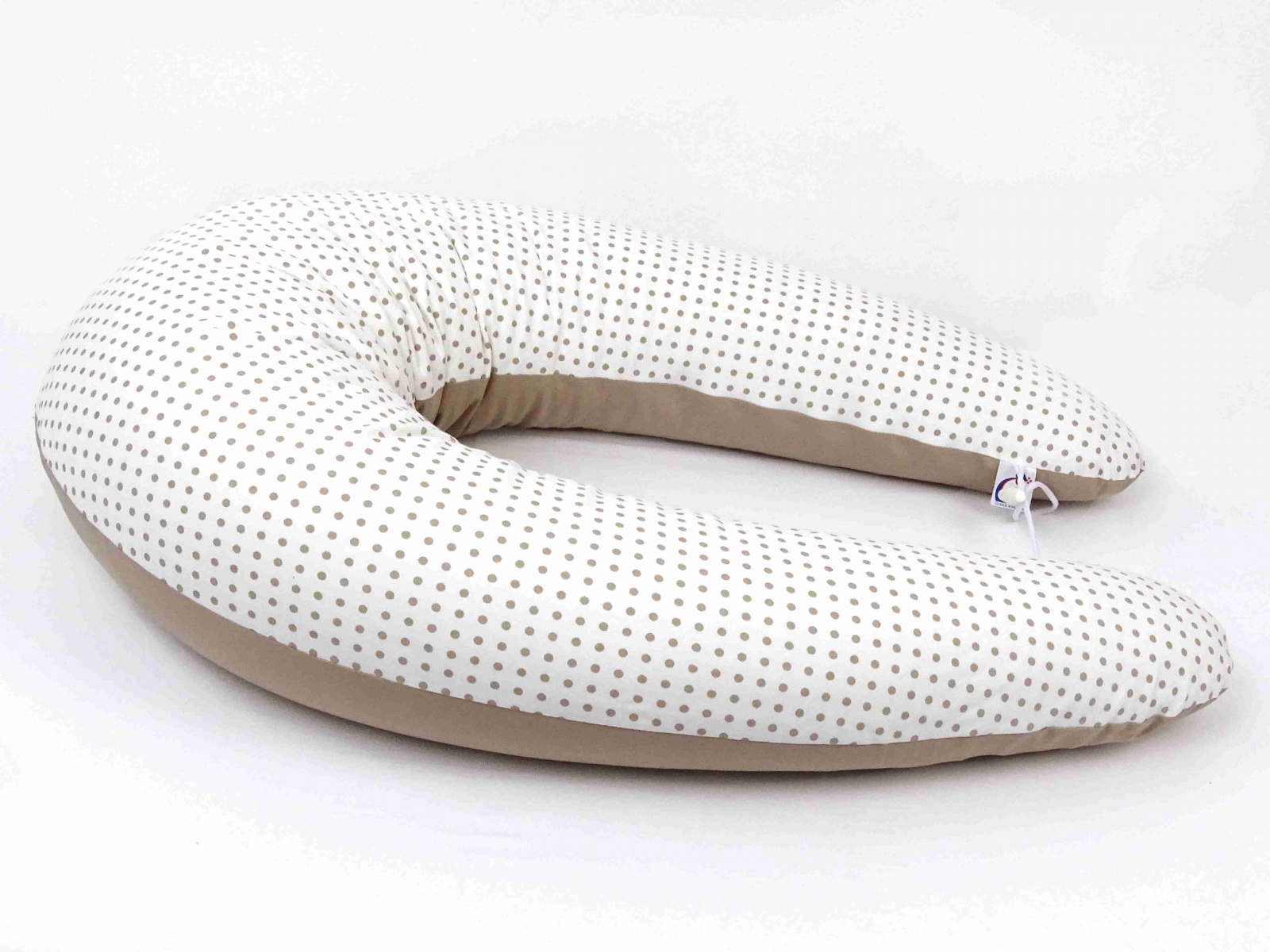 Kojící polštář STANDARD 170 cm + snímatelný potah, PUNTÍK DVOUBAREVNÉ BÉŽOVÝ, 100% bavlna