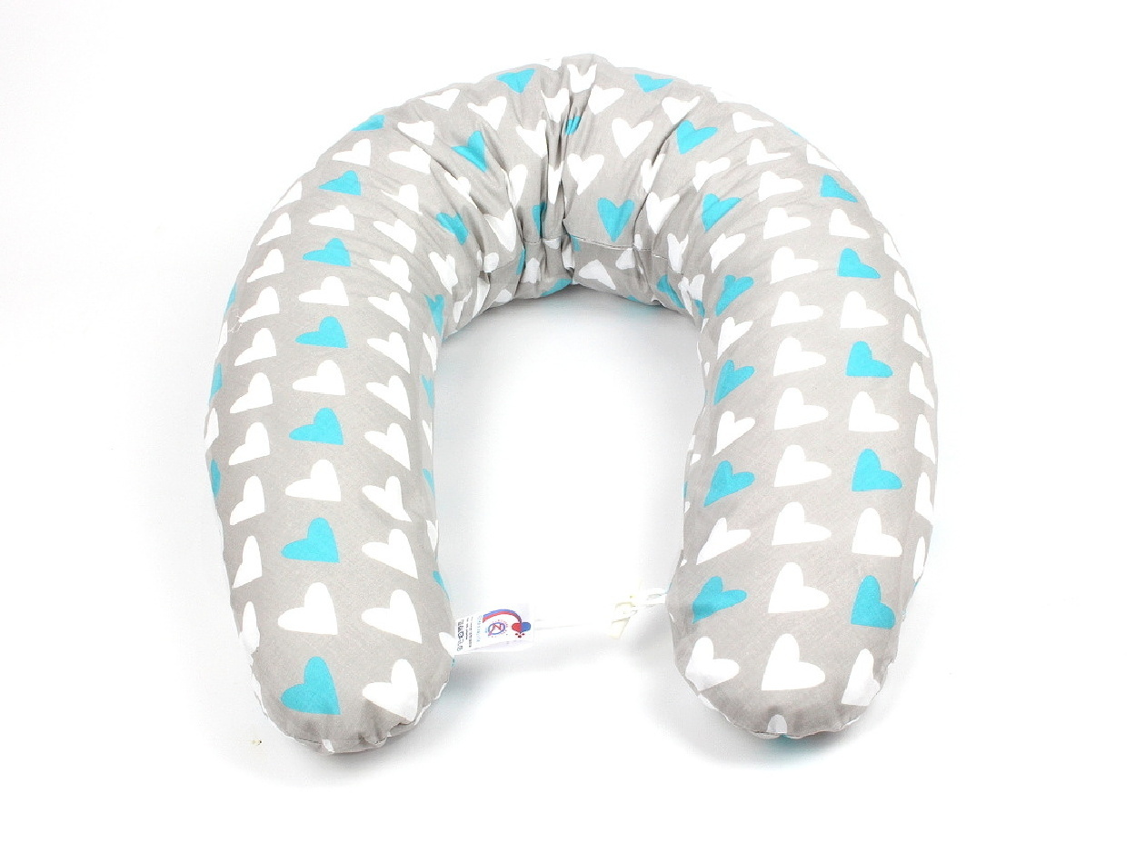 Kojící polštář STANDARD 170 cm + snímatelný potah, SRDCE MODRÉ, 100% bavlna