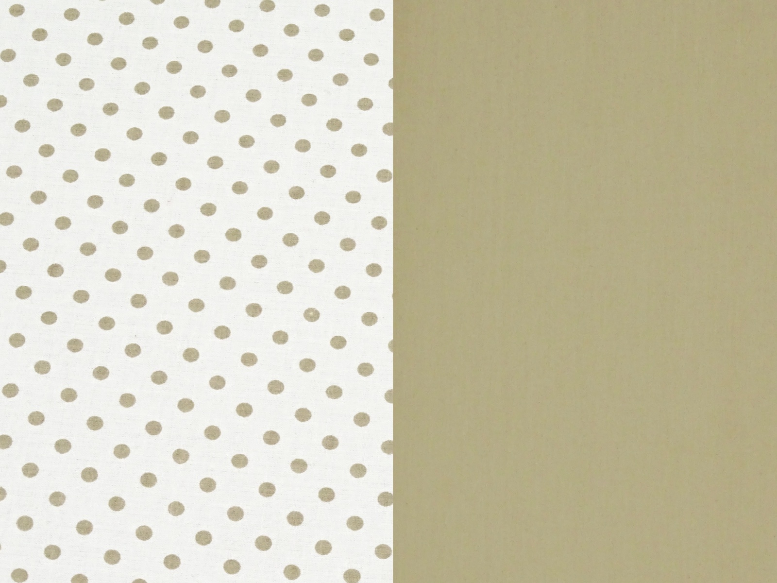 Na jedné straně polštáře jemný béžový puntík na bílém podkladu, na straně druhé jednobarevná bavlna, béžová barva, vše je barevně slazeno.
