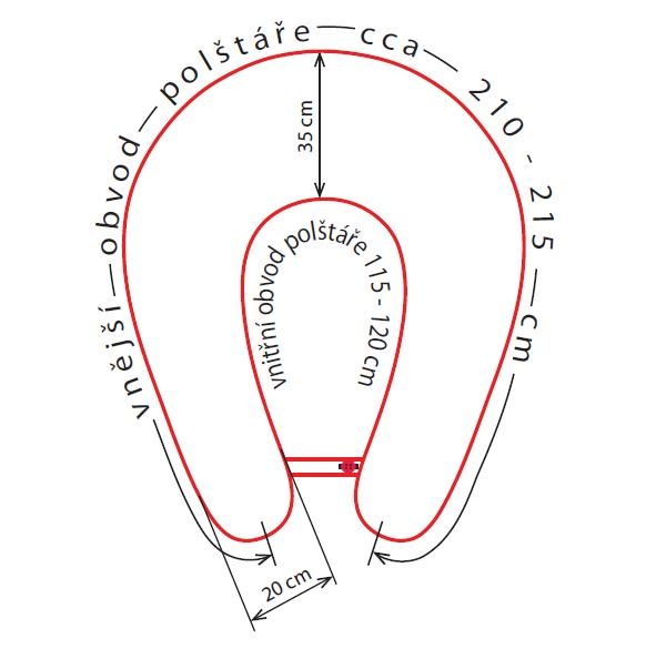 Kojicí pošltář Matýsek:velikost STANDARD 170 cmZde vidíte, jak se měří vnější obvod, vnitřní obvod, šířka polštáře,... |