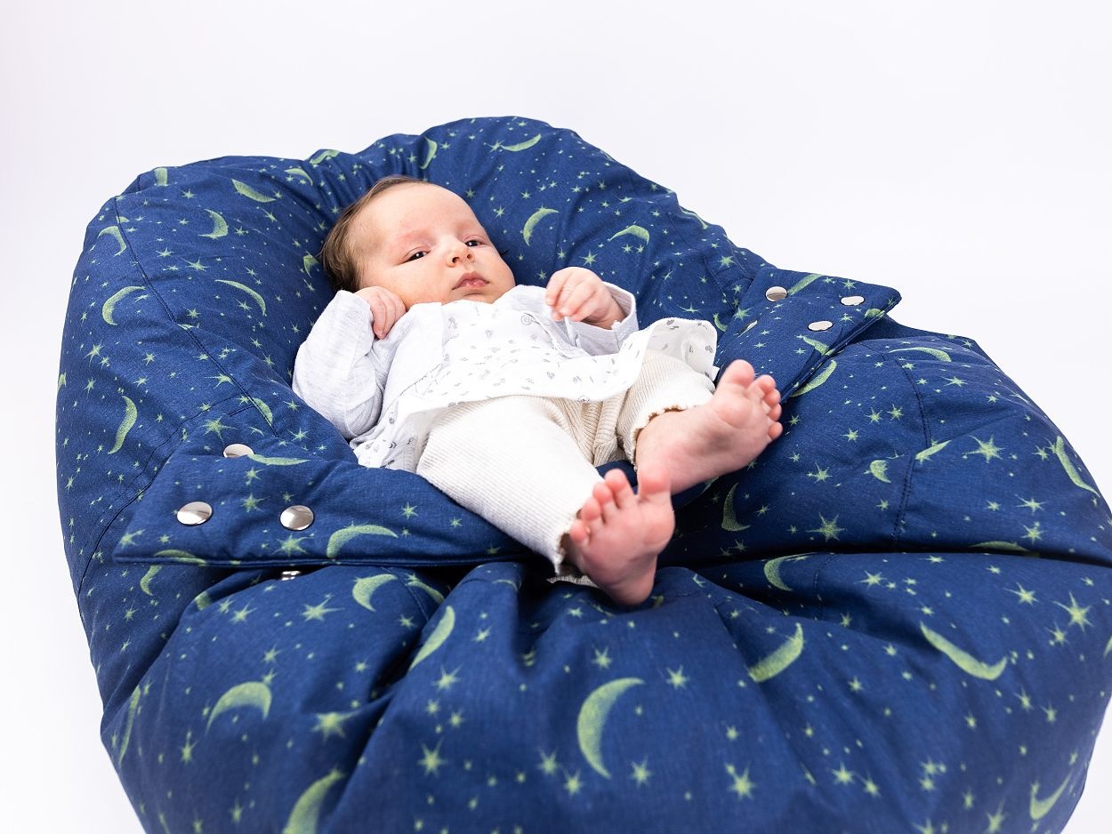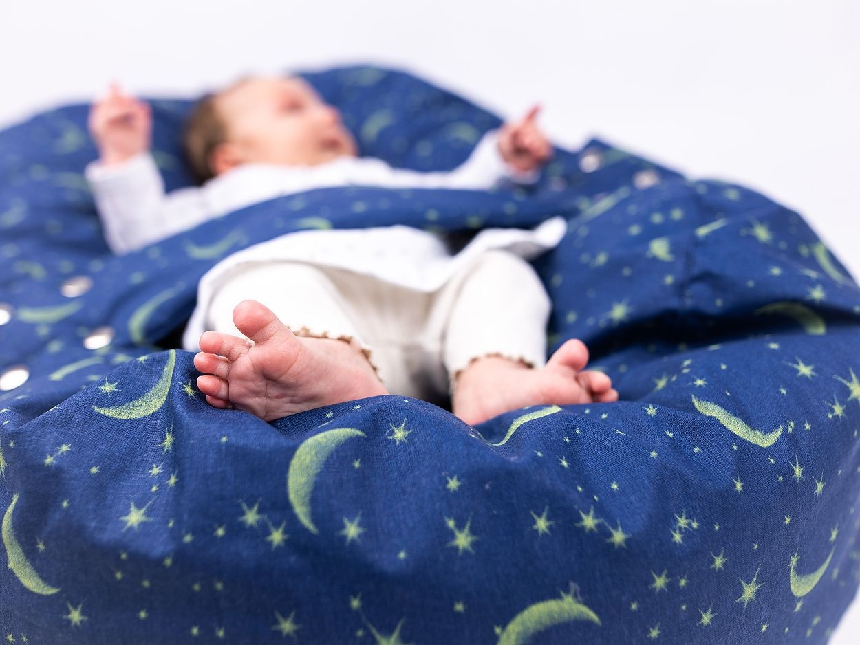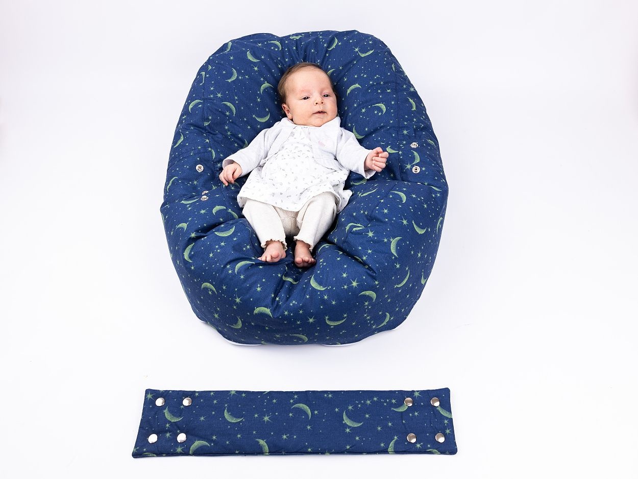 Relaxační polštář, pelíšek pro miminko, se snímatelným potahem, 100% bavlna, NOČNÍ OBLOHA