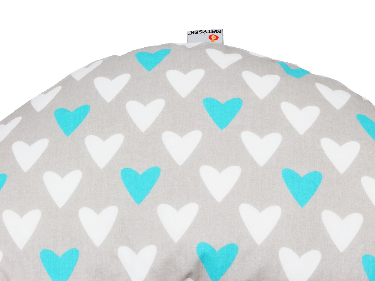 Kojící polštář STANDARD 170 cm + snímatelný potah, SRDCE MODRÉ, 100% bavlna